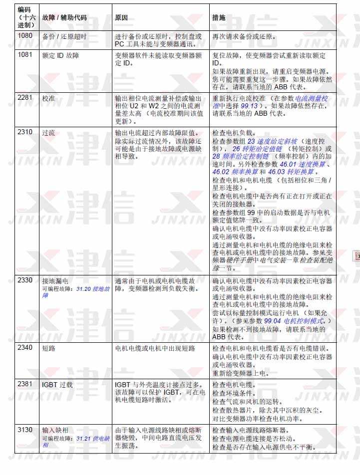 ABB ACS580變頻器故障代碼80A0,80B0,80B1,80B2,80B3,80B4,80B5,9081,9082,9083,9084