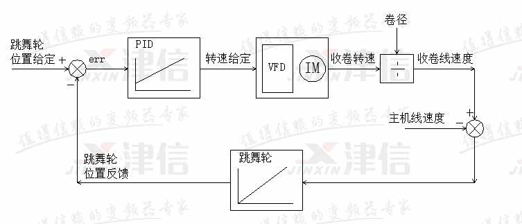 可見收卷線速度同步控制的控制要求,可以轉(zhuǎn)化為跳舞輪位置控制的要求。