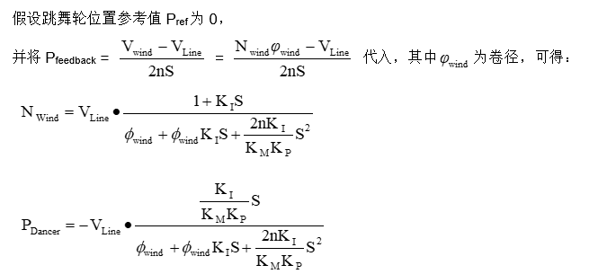 根據(jù)動(dòng)滑輪的物理性質(zhì),跳舞輪的位移PDancer與卷繞線速度Vwind、VLine有如下關(guān)系: