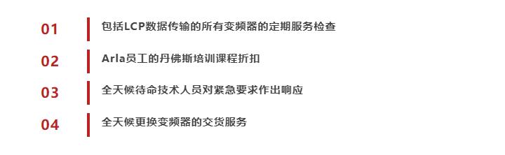 除了采用丹佛斯變頻器外,Arla還購買了丹佛斯DrivePro® 丹佛斯為Arla提供高水平的服務,內部服務團隊由30名專業技術人員組成,在發生問題時能夠100%快速響應。