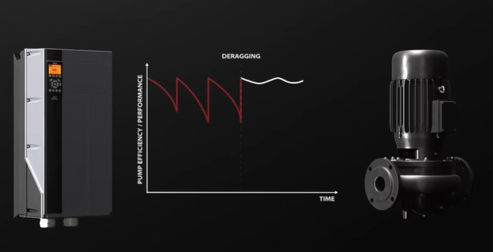 及早檢測堵塞問題并加以凈化,其背后的技術(shù)內(nèi)置于丹佛斯智能變頻器內(nèi)。基于工況的監(jiān)測和凈化功能協(xié)同作用,實(shí)現(xiàn)可靠無憂的泵送。工況監(jiān)測與凈化達(dá)成的組合效應(yīng)也稱為基于工況的凈化。